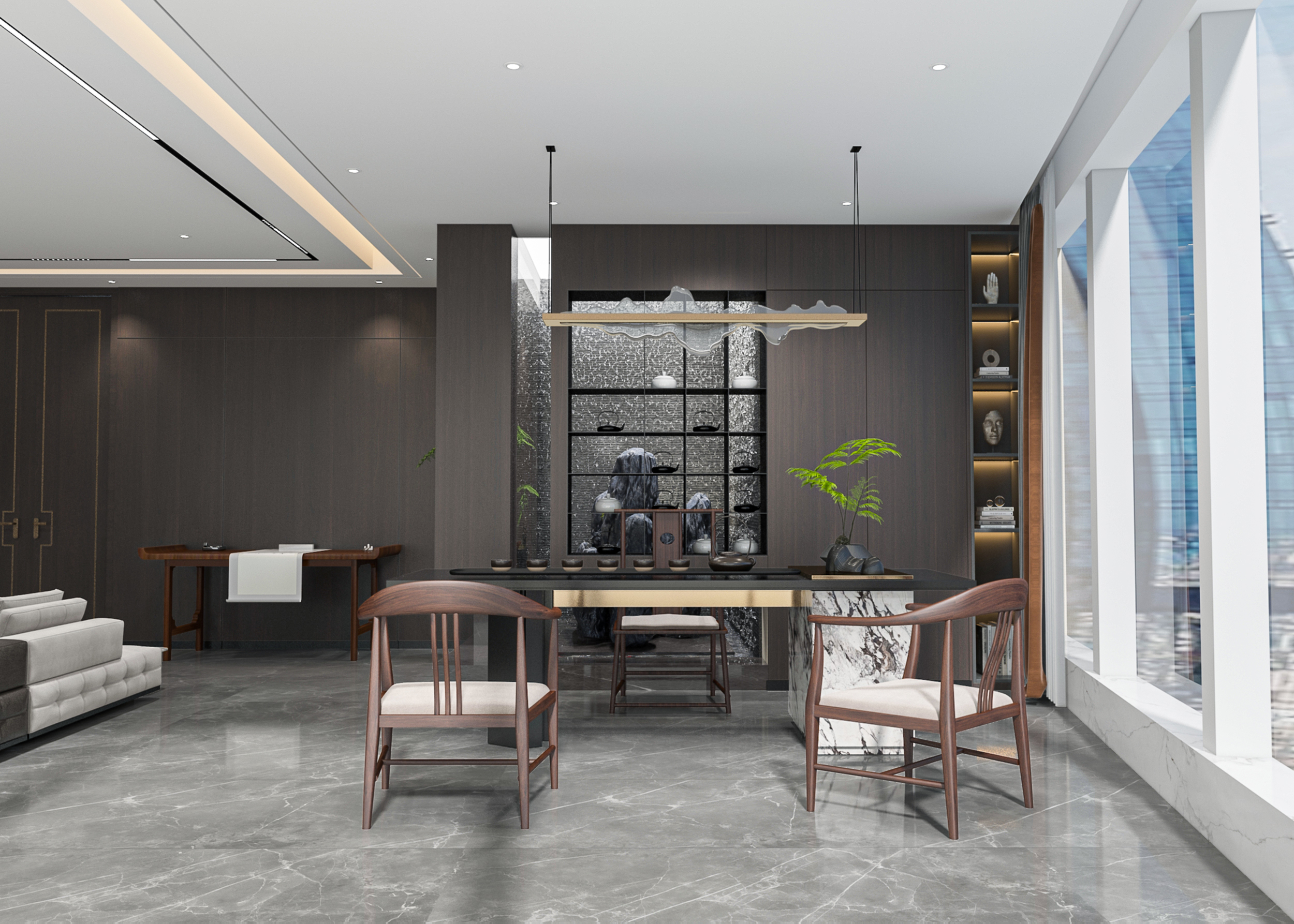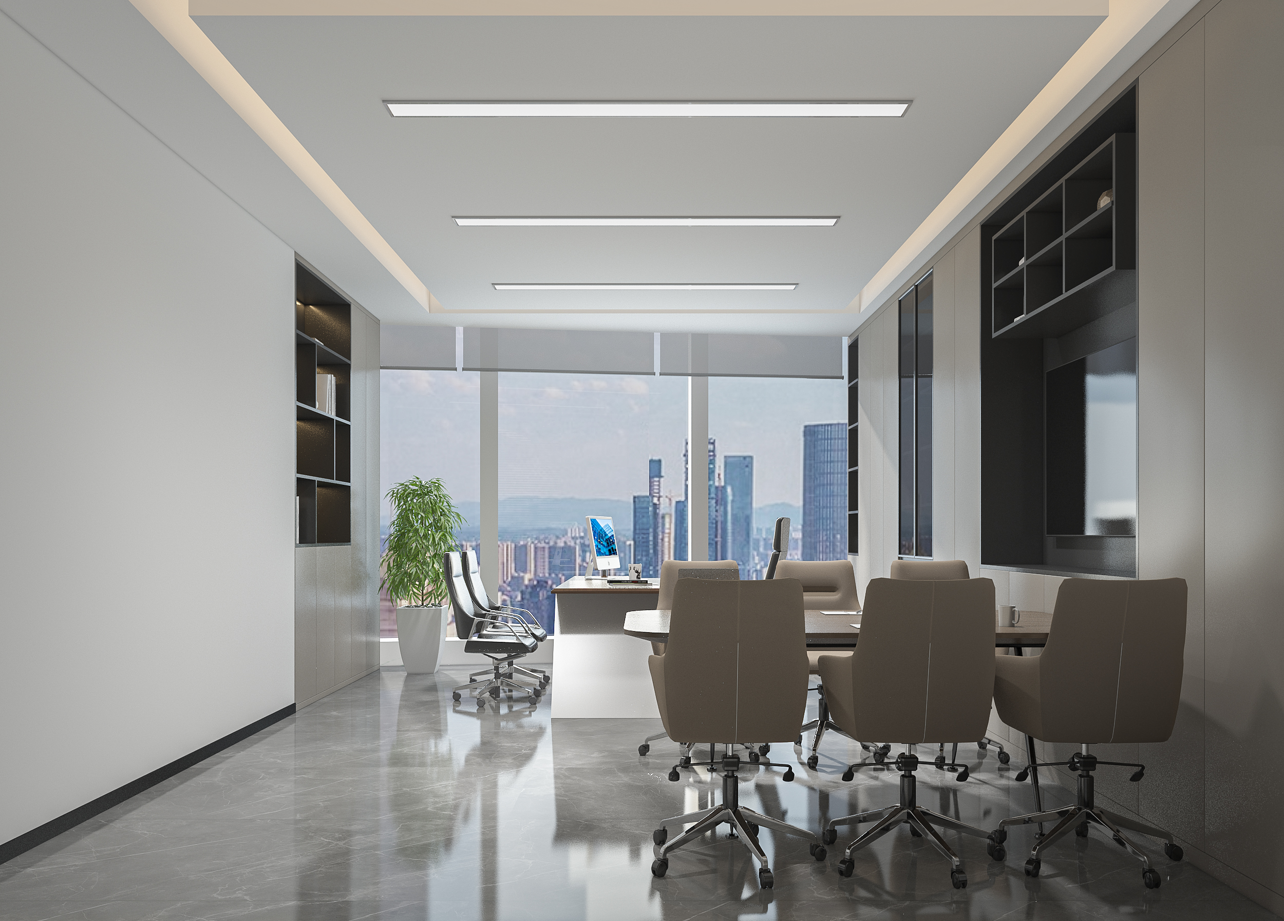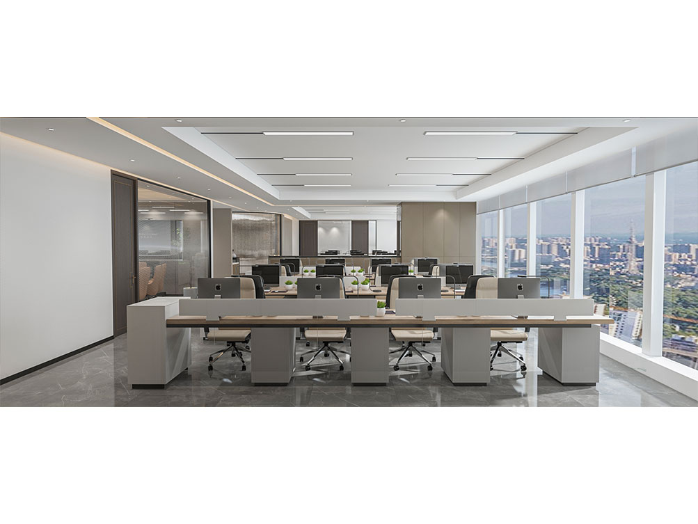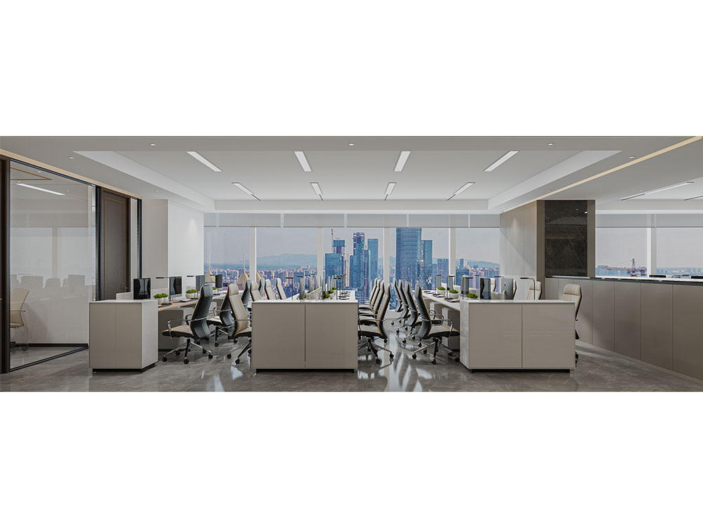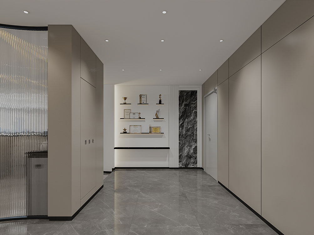風(fēng)順集團(tuán)裝修效果以 “大氣沉穩(wěn) + 現(xiàn)代高效” 為核心,整體采用深灰、米白為主色調(diào)搭配金屬線條點(diǎn)綴,凸顯企業(yè)質(zhì)感。前臺(tái)接待區(qū)用大理石背景墻嵌入集團(tuán) LOGO,搭配簡(jiǎn)約大氣的接待臺(tái)與藝術(shù)擺件,營(yíng)造專業(yè)第一印象;濟(jì)南辦公室裝修為開放辦公區(qū)采用模塊化工位設(shè)計(jì),配備獨(dú)立收納與人體工學(xué)座椅,墻面穿插集團(tuán)發(fā)展歷程掛畫與綠植,兼顧高效與舒適;會(huì)議室按規(guī)模配置高清會(huì)議系統(tǒng)與吸音材質(zhì),滿足不同商務(wù)需求;同時(shí)預(yù)留休閑茶水區(qū)與榮譽(yù)展示墻,既方便員工放松,也直觀傳遞企業(yè)實(shí)力,整體空間兼具品牌形象與實(shí)用功能。