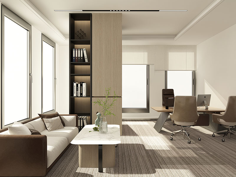 開(kāi)放與私密的平衡藝術(shù)輕奢辦公空間的布局,強(qiáng)調(diào) “通透感” 與 “功能性” 的統(tǒng)一。一方面,開(kāi)放辦公區(qū)采用規(guī)整且疏密有致的工位排列,利用線(xiàn)條的簡(jiǎn)潔性與空間的開(kāi)闊感,傳遞出企業(yè)的活力與秩序;另一方面,高管辦公室、會(huì)議室等私密區(qū)域,通過(guò)玻璃隔斷、木質(zhì)護(hù)墻等元素劃分,實(shí)現(xiàn)開(kāi)放與私密同存在的層次美學(xué),讓動(dòng)線(xiàn)流暢且富有節(jié)奏。