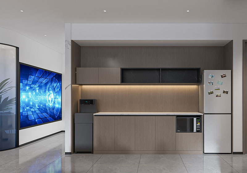 會(huì)議區(qū)選用灰白拼接辦公椅,搭配長(zhǎng)條會(huì)議桌,適配團(tuán)隊(duì)協(xié)作需求;大屏顯示設(shè)備與墻面綠植相襯,在實(shí)用功能中注入活力。整體布局貼合濟(jì)南辦公室裝修的實(shí)用與美學(xué)結(jié)合趨勢(shì),既滿足企業(yè)技術(shù)交流場(chǎng)景,又彰顯科技公司的專業(yè)質(zhì)感。